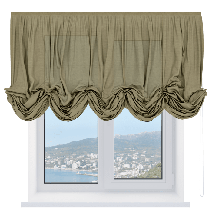 Австрийская штора лён кашемир коричневый, карниз верёвочный