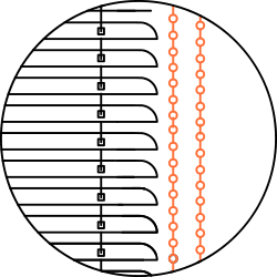 Конструкция отличается от классических тем, что ламели поднимаются и скрываются в небольшом коробе наверху — кассетой. Этот короб скрывает также все механизмы и цепочку для управления шторам и их подъемом.